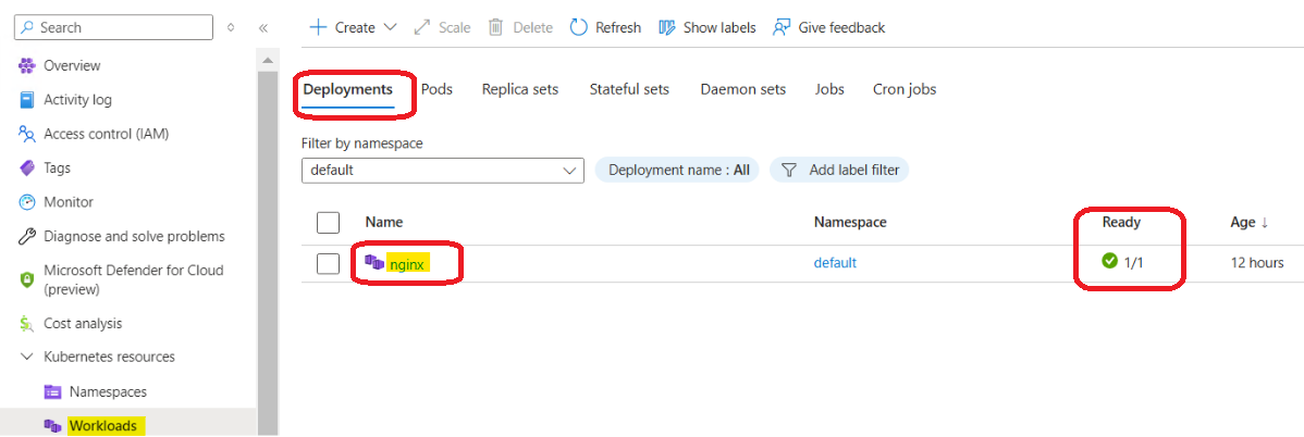 We also ensure in Azure portal by viewing pod will be created as shown below images under default namespace.