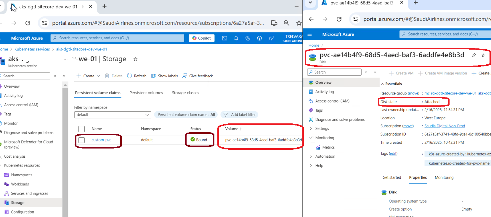 As highlighted in yellow, you can able to view Persistent Volume has created with name of “pvc-ae14b4f9-68d5-4aed-baf3-6addfe4e8b3d”