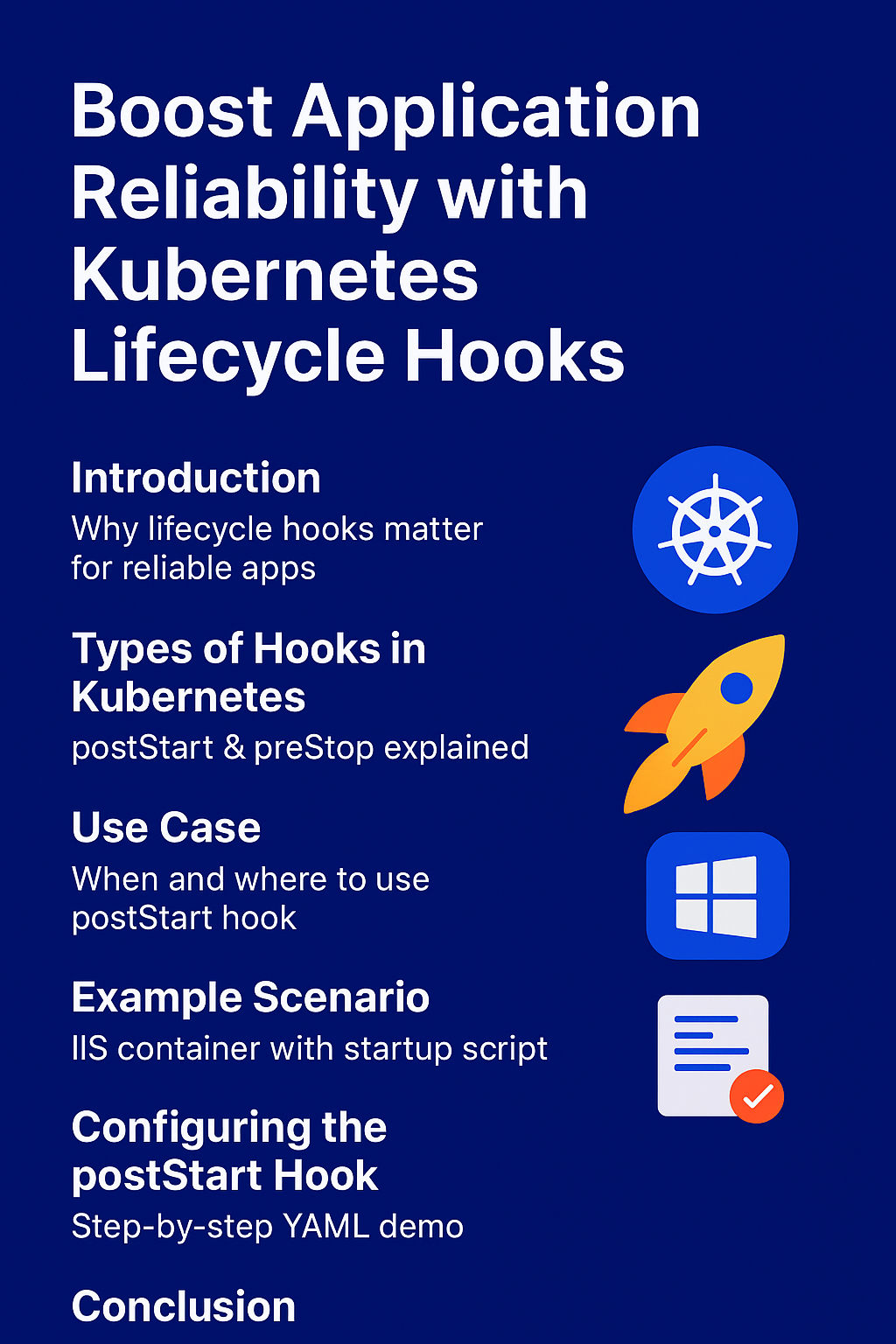 Kubernetes lifecycle hooks like postStart give developers greater control over container startup behavior. Whether you’re initializing services, warming up applications, or preparing IIS environments, hooks can significantly improve reliability and user experience.